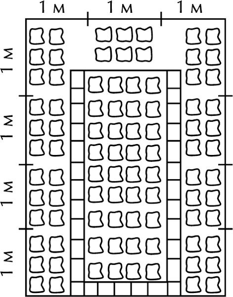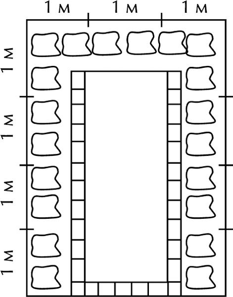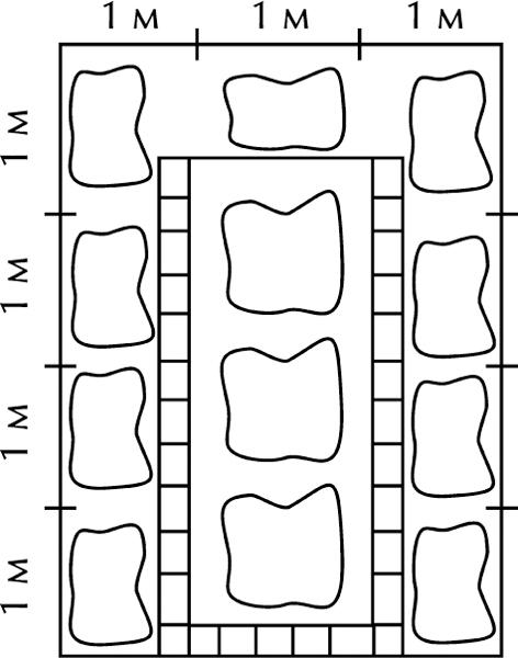 Пример размещения растений на 12 м2 площади. Помидоры – 20 шт. (высокорослых сортов)