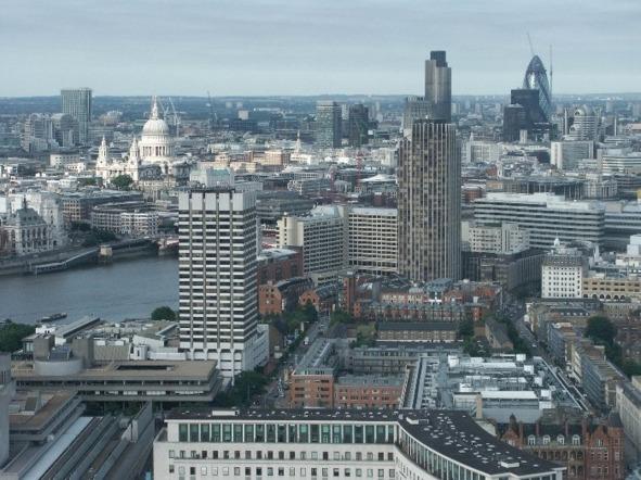 Что там бликует на солнце? Ба, это же белёсая тюбетейка собора св. Павла! Пятого по счёту собора на этом месте. Хотя четвёртый, 150-метровой высоты, можно было запросто восстановить после Великого пожара, власти решили распилить бюджет 1675 года на пару с архитектором Кристофером Реном и построить новый, вероятно, наименее затратный, поскольку два первых проекта, под которые, наверное, и брались деньги, были отклонены.
