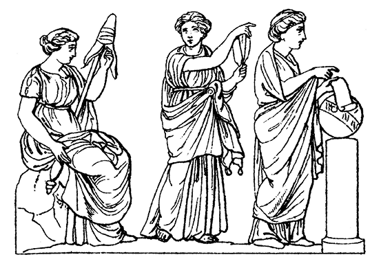 Зевс хранит порядок и правду в мире и посылает людям счастье и горе. Но хотя посылает людям счастье и несчастье Зевс, все же судьбу людей определяют неумолимые богини судьбы — мойры [11], живущие на светлом Олимпе. Судьба самого Зевса в их руках. Властвует рок над смертными и над богами. Никому не уйти от велений неумолимого рока. Нет такой силы, такой власти, которая могла бы изменить хоть что-нибудь в том, что предназначено богам и смертным. Лишь смиренно склониться можно перед роком и подчиниться ему. Одни мойры знают веления рока. Мойра Клото прядет жизненную нить человека, определяя срок его жизни. Оборвется нить, и кончится жизнь. Мойра Лахесис вынимает, не глядя, жребий, который выпадает человеку в жизни. Никто не в силах изменить определенной мойрами судьбы, так как третья мойра, Атропос, все, что назначили в жизни человеку ее сестры, заносит в длинный свиток, а что занесено в свиток судьбы, то неизбежно. Неумолимы великие, суровые мойры.