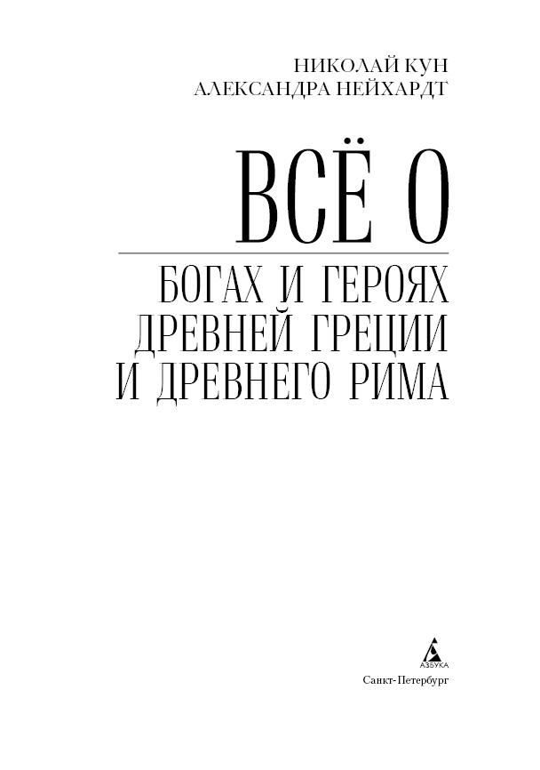 Всё о богах и героях Древней Греции и Древнего Рима / Николай Кун, Александра Нейхардт. — СПб. : Азбука, Азбука-Аттикус, 2023. : ил.