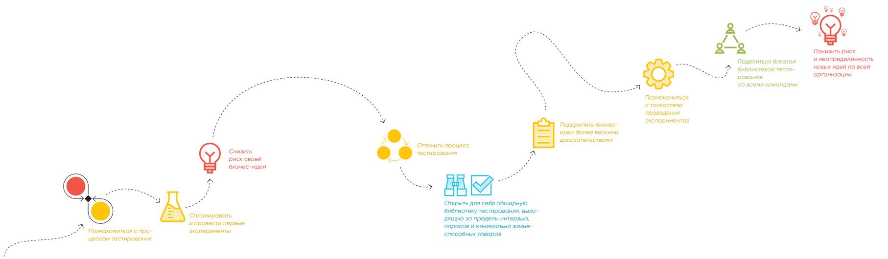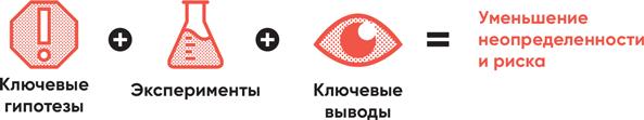 Протестируйте в соответствующих экспериментах наиболее значимые гипотезы. Каждый эксперимент дает доказательства и выводы, помогающие обучаться и принимать решения. Опираясь на доказательства и выводы, скорректируйте идею, если оказались на неправильном пути, или переходите к тестированию других ее аспектов, если доказательства подтверждают правильность выбранного курса.