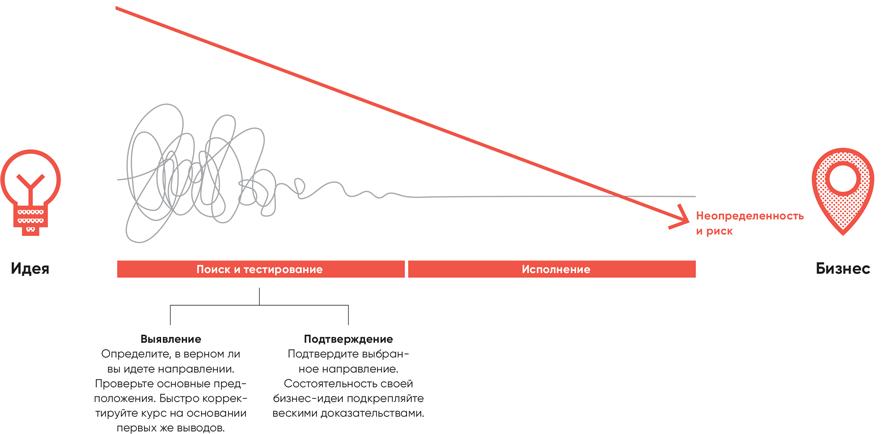 В основу нашего процесса положены этапы выявления и подтверждения из работы Стива Бланка «Стартап: настольная книга основателя». Мы очень много почерпнули из этой книги.