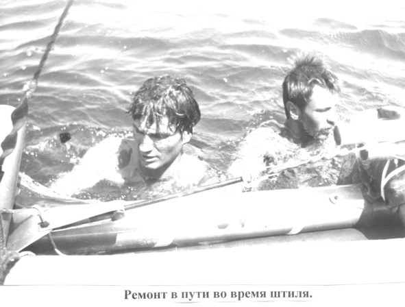 На третий день во время штиля мореходы решили использовать моторчики. Моторчик не заводился, вывернули свечу и уронили уплотнительное кольцо. Сквозь прозрачную морскую воду путешественники видели, как кольцо волнистой линией быстро уходило в глубину, и ничего не могли поделать. Такова особенность путешествия по воде. Видишь, и ничего не можешь изменить.