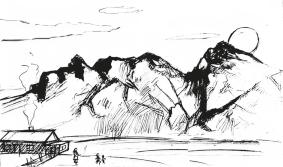Аласа орындық үстінде шашылып жатқан темекі қоқымдарын алақаныммен сыпырып тастап, имене отырдым. Иығына мылтық асынған, ақбоз атқа мін-ген айбарлы батырдың тұлғасын салыпты. Оның сызған картиналары көз тартатын көркем әм жұм-баққа толы келетін. Түрлі бояулар жұққан қолын ауызы аңырайып ашық-шашық жатқан топырақ пеш үстіндегі ескі орамалға сүртті де, маған қарап ыржиып күліп қойды. Таудың тағы табиғаты қанына сіңген оның мінезі мүлде өзгеше болатын. Неше жүздеген жылдар бойы сол таулар үшін қанын төккен батырлардың суретін салуға, олар жайлы әңгіме айтуға әуес еді. Маған тесіле қарады да: