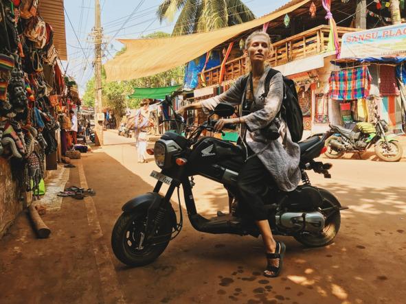 Однажды, где-то на третий сезон зимовки в Гоа (2019 г.), я ехала на байке по деревенской дороге. Вокруг были настоящие осенние джунгли: солнечный свет продирался через столб рыжей пыли, которую поднимали проезжающие мопеды. Местные жители жгли сухие опавшие листья. Старые колоритные стены драных хижин перемежались с вычурными кислотными красками домов. Солнечный шар медленно двигался к горизонту и бросал лучи сквозь засохшую грязную листву под колёса моего байка. Безветренно, дым, п