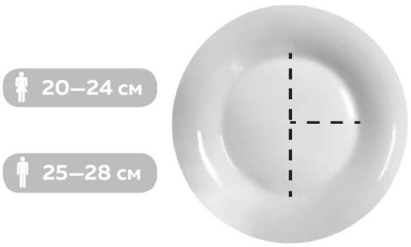 Возьмите в руки самую обычную тарелку (диаметром от 20 до 24 см для женщин и от 25 до 28 см для мужчин) и поделите ее по середине на две равные части. Далее поделите правую половину еще раз пополам. Запомните эту схему и всегда и везде, при любых обстоятельствах независимо от места (дома или в ресторане), в любой стране мира и времени года визуально делите тарелку именно по этому принципу.