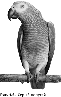 Незаурядные способности в области овладения человеческим языком продемонстрировал в опыте Айрин Пепперберг серый попугай Алекс (жако, Psittacus erithacus)39. За 30 лет он научился понимать (и произносить!) более полусотни названий разных предметов (ключ, прищепка, пробка, орех, макароны…), семь названий цветов, пять вариантов форм (треугольник, круг…), несколько разновидностей материалов (дерево, кожа, пластик…), числа до восьми, названия мест, слова «одинаковый», «разный», «нет», «хочу», «пойти» и т.д. Он оказался способен отвечать на вопросы типа «Сколько здесь деревянных предметов?», «Какого цвета больший [из предметов]?», причем даже в тех случаях, когда эти предметы он видел впервые.
