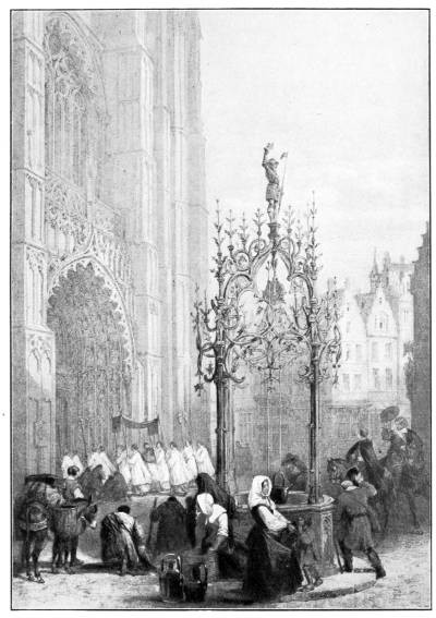 The pump now situated in the Milk Market is a very pretty monument. It is surmounted by a carved statuette representing a milk-woman, with the peculiar brass milk can of the country upon her head. It is the history of this statuette which we propose to relate.