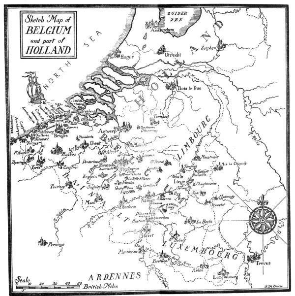 North of the line are the fertile plains and gardens, the busy cities and the factories, of Flanders. Through them flows the Scheldt, the river of commerce.