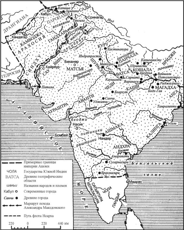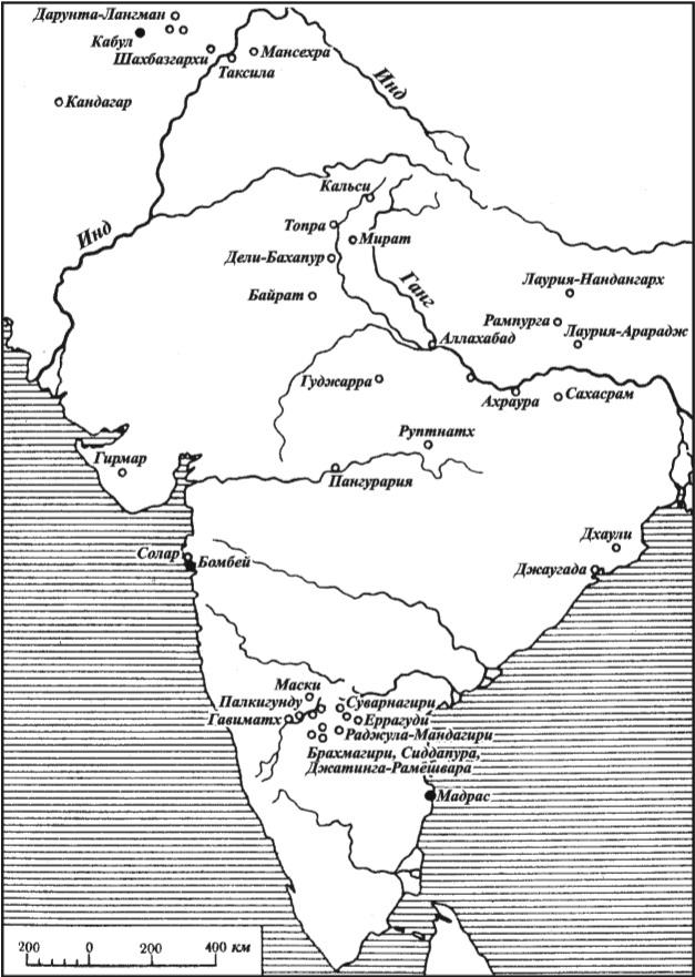 Места находок надписей Ашоки.