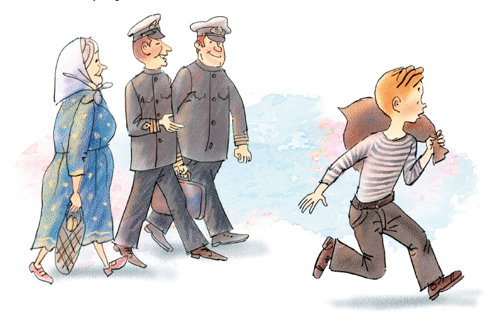 Прихватив свой мешок, он обдумывал, как добираться дальше, когда на перроне появились два матроса. Они браво направлялись к седьмому вагону. Солнышкин с грустью посмотрел на них.