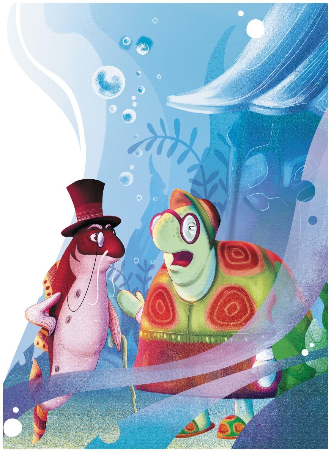 Мимо рака, причитая, проплыл Пескарь Иванович. У него до сих пор кружилась голова от этой гонки. Он подплыл к домику, куда закатился лунный малыш. Из-за двери выглянула большая черепаха.