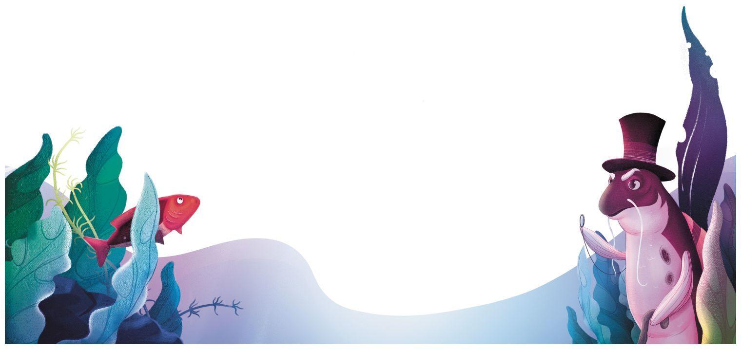 Малыш открыл глаза и увидел, что перед ним стоял господин с плавниками, усами и моноклем на глазу (малыш тогда ещё не знал, что это такое. Но догадался, что эта штука нужна, чтобы лучше видеть).