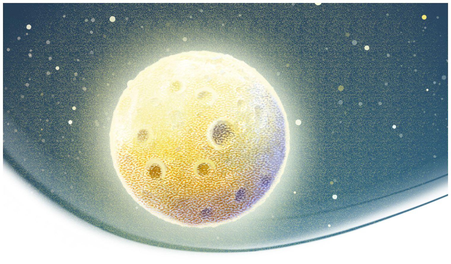 И вот представьте, на поверхности луны, покрытой кратерами и неровностями, на фоне ослепительного звездопада, вдруг появилось яйцо. Оно было светло-фиолетового оттенка с неровными пятнами. Кто там? Лунный динозаврик? Или птенец?