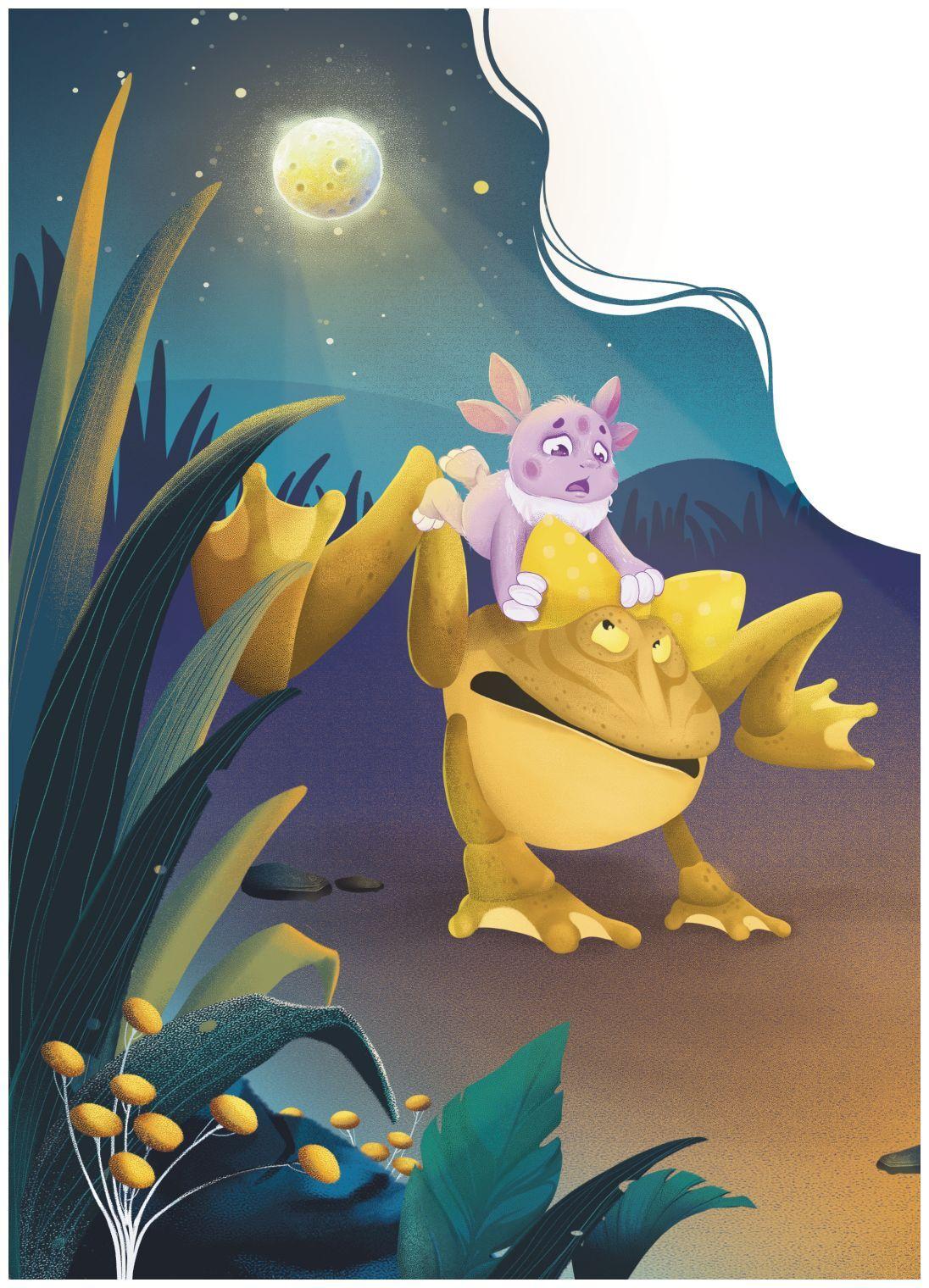 Лунный гость быстро добрался до берега, прыгая по широким зелёным листьям кувшинок. Он осторожно раздвинул траву и пробрался вперёд, чтобы лучше рассмотреть попрыгунью.