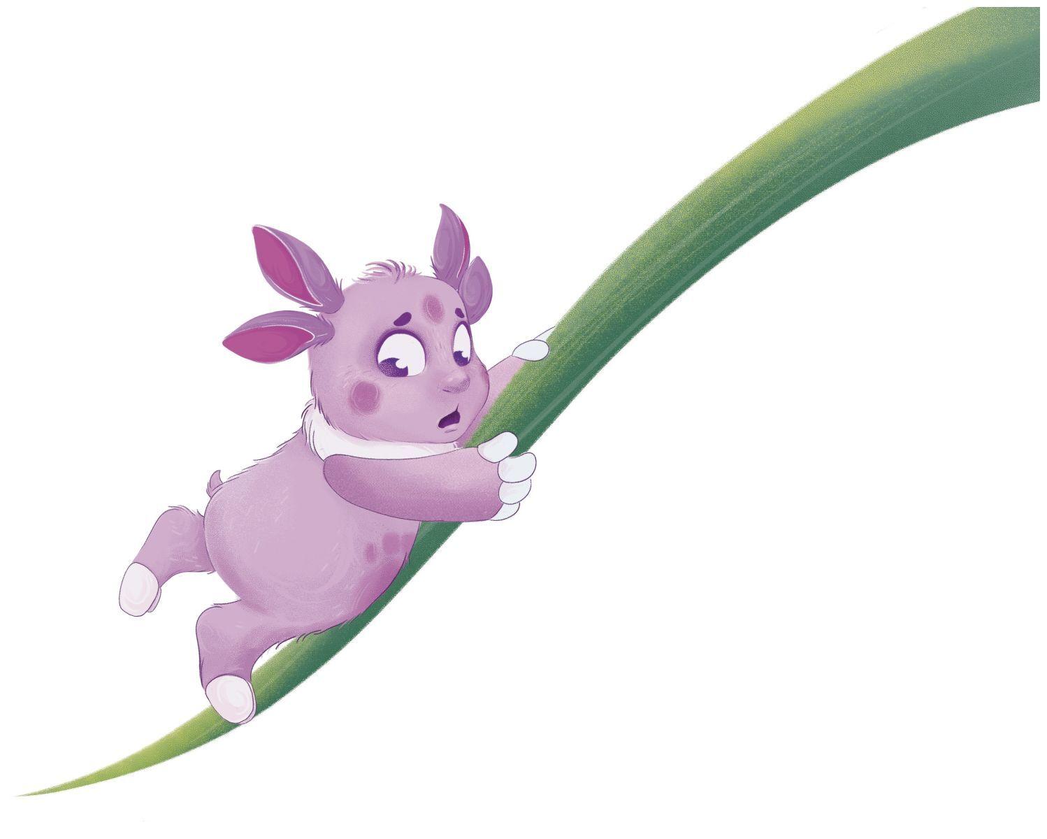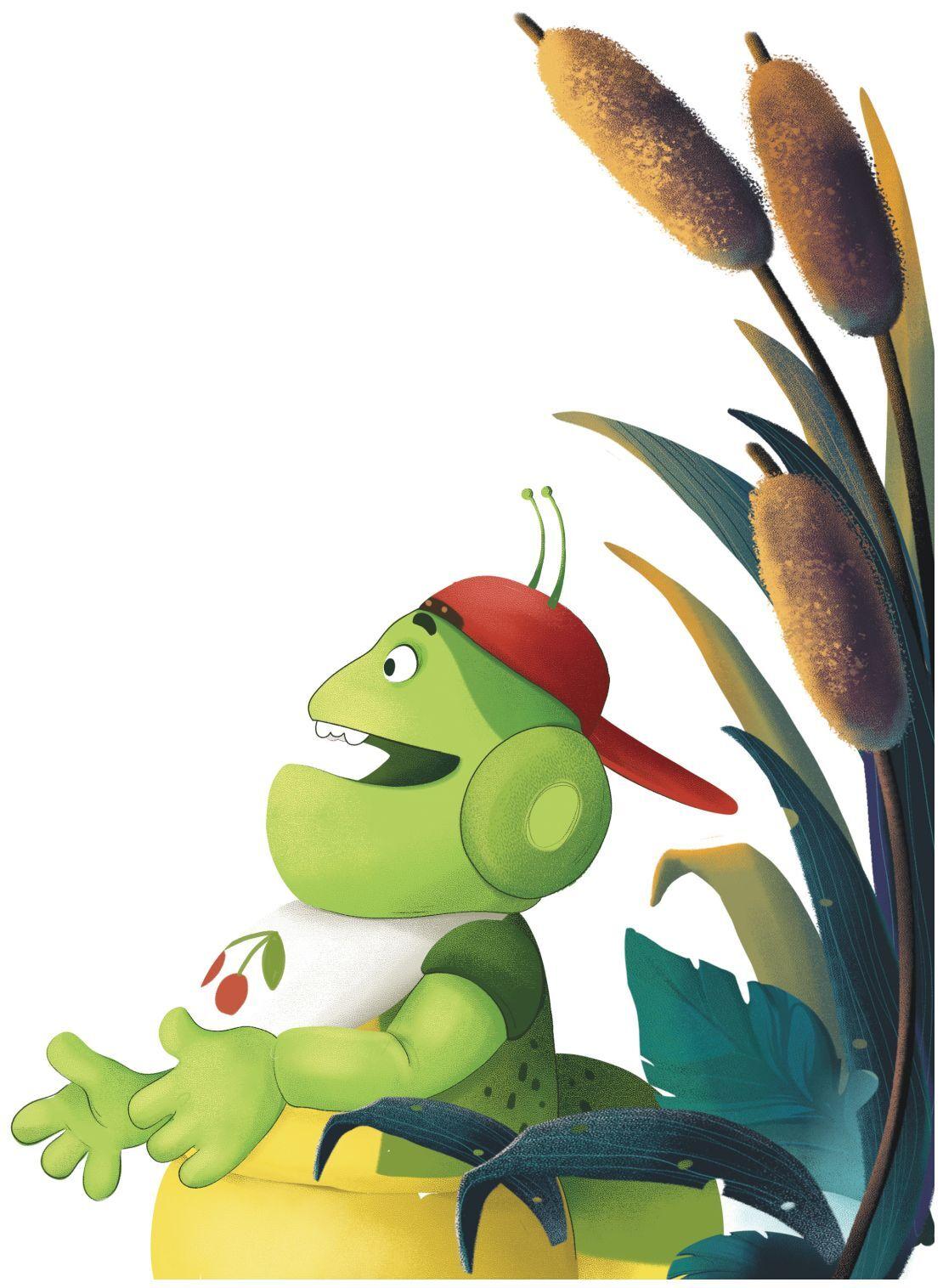 Малыш продолжал идти вперёд. Тут травинка прогнулась, и он скатился по ней, как с горки. Прямо на спину лягушке! Та от испуга и неожиданности пустилась наутёк. Она высоко подпрыгивала над травой туда-сюда, пытаясь сбросить с себя наездника. А малыш держался за неё, как мог, чтобы не упасть. Но лягушка скакала так быстро, крутилась и вертелась в воздухе, что он всё же не удержался и слетел вниз.