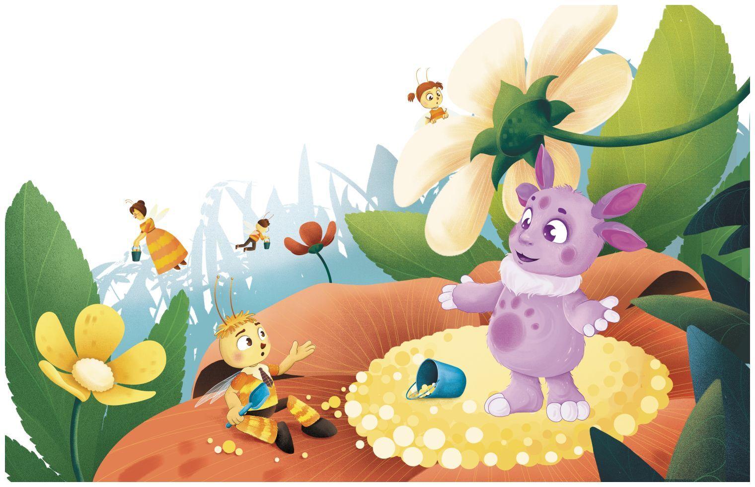 – Ты не пчела и нектар собрать не сможешь! – сказал Пчелёнок. А малыш взял ведёрко и одним движением зачерпнул столько пыльцы, сколько Пчелёнок собирал бы не меньше часа. Тот от изумления открыл рот.