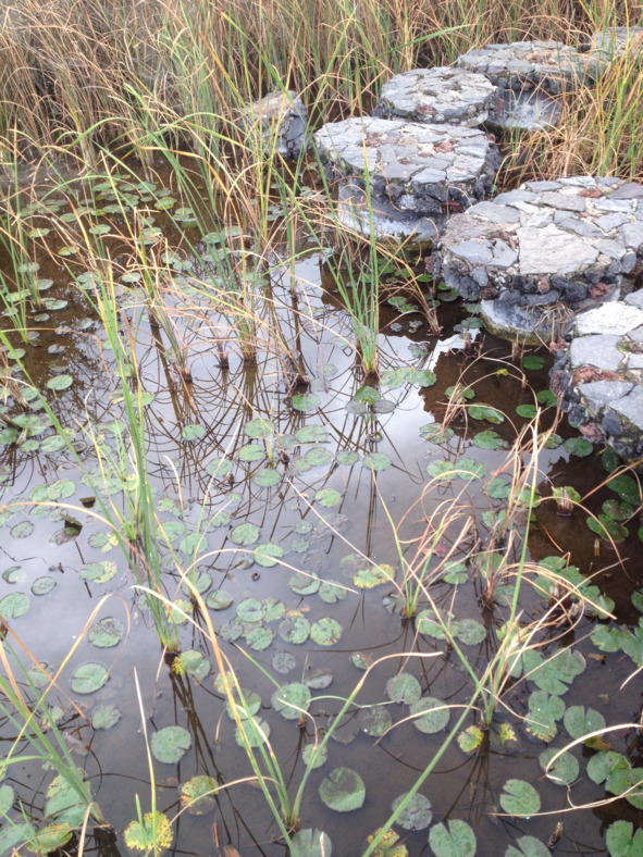 Стильное болото, совершенно диссонирующее с вулканическим пейзажем, конечно не может родить лотос, поэтому попрыгав по камушкам, пытаясь сохранить равновесие, я возвращаюсь на тропу.