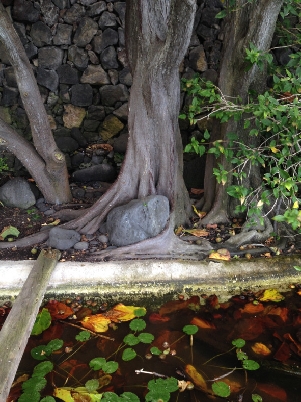 Корни его цепко сжимают увесистую базальтовую глыбу.