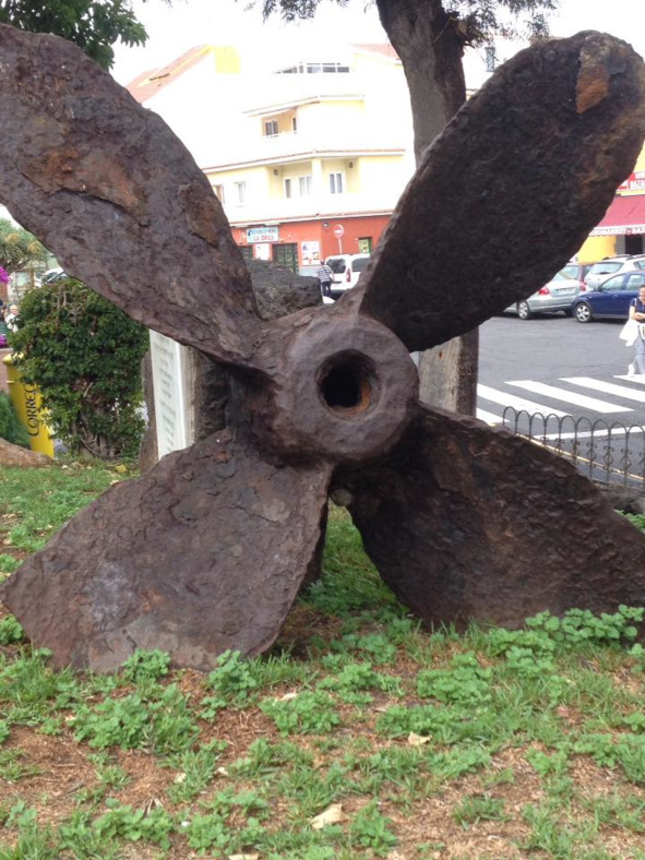 Так и вышла с мыслью о равновесии, наверное поэтому сразу попала в сад равновесия — огромное пространство на бушующем волнами берегу из сложённых известным образом камней с инсталляцией, символизирующей остановленную динамику волны из стальной арматуры. Дальше больше — упокоенный гребной винт сто лет назад затонувшего норвежского судна.