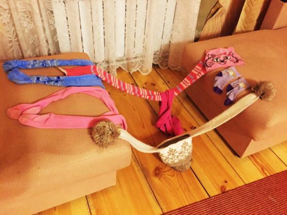 «С помощью растянутых шарфа и шапки автор явно хотел показать, соединение прошлого и будущего в настоящем моменте. Морда кота — это единство с природой, а повернутые в одну сторону носки — поиски душевного покоя. Что означают розовые и синие колготки, даже для экспертов культуры осталось загадкой».