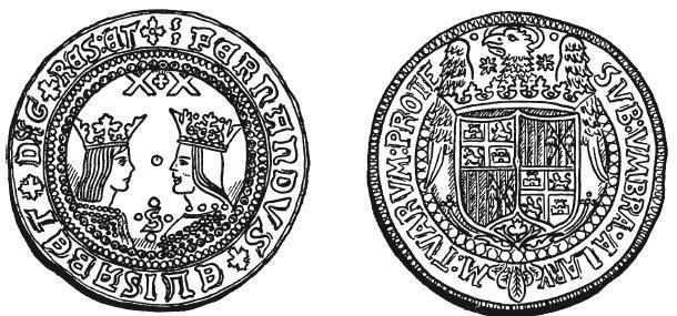 30ЛОТАЯ МОНЕТА В 20 ЭКСЕЛЕНЦ, ВВЕДЕННАЯ ФЕРДИНАНДОМ И ИЗАБЕЛЛОЙ