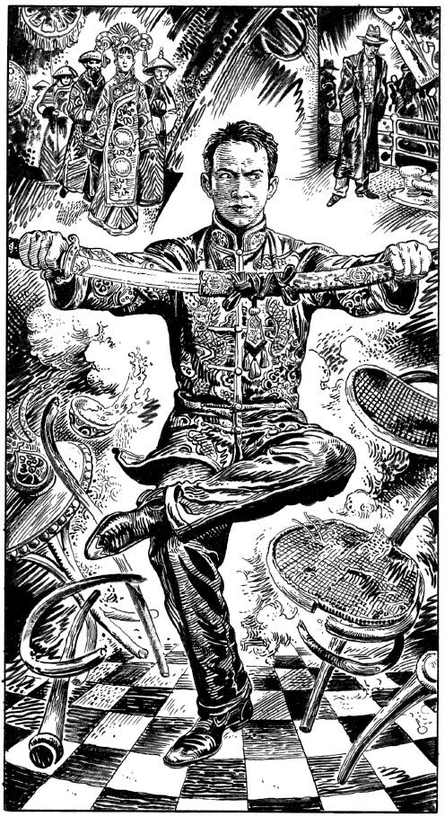 Баг приблизился к ближайшему стулу, сосредоточился и, выпустив с хеканьем воздух, резко опустился на него. Этому, в сущности, нехитрому трюку Баг научился еще в бытность свою в училище: полностью сконцентрировав энергию ци в тазобедренной области, надлежало присесть и в соответствующий момент выпустить всю энергию прямо вниз; особое внимание уделялось при этом правильному положению ног — их не следовало сгибать более, чем необходимо человеку, который сидит на стуле или иной пригодной для того поверхности. В усовершенствовании данного упражнения Баг пошел еще дальше и выполнял его, совмещая с движением правой ноги, которая плавно закидывалась на опорную левую. Надо признать, много стульев полегло в щепы, да и штатные врачеватели устали колдовать над поврежденным седалищем Бага, прежде чем он достиг необходимой сноровки.
