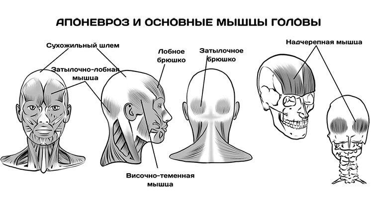 Апоневроз и основные мышцы головы