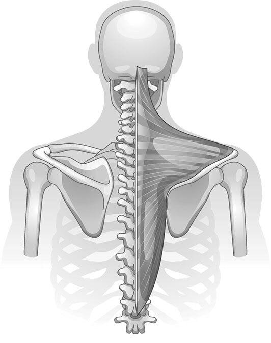 Верхняя часть мышцы поднимает плечи. Короткая шея как раз от сильного напряжения этих мышц. Средняя и нижняя части трапециевидной мышцы сводят лопатки. Проще всего продиагностировать верхнюю и среднюю часть мышцы. Попробуйте прощупать противоположной рукой эти участки плечевого пояса. Ощущается ли боль, или мышцы мягкие и эластичные? После такой самодиагностики вы поймете, что какие-то мышцы у вас напряжены, а какие-то растянуты. И для них нужны разные нагрузки. Поэтому упражнения «для всех и от всего» не работают.