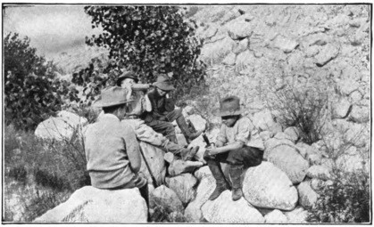 They had passed the previous night in a sheltered valley lower down, sleeping on the ground, under the stars, and had breakfasted from the scanty stock of eatables carried in their haversacks. Early that morning a train of burros had landed their outfit at the end of a rough trail some distance below, and the boys, with long labor and patience, had carried it up to the plateau.