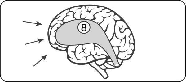 1 – лобные отделы коры, отвечают за мотивацию и произвольное поведение.