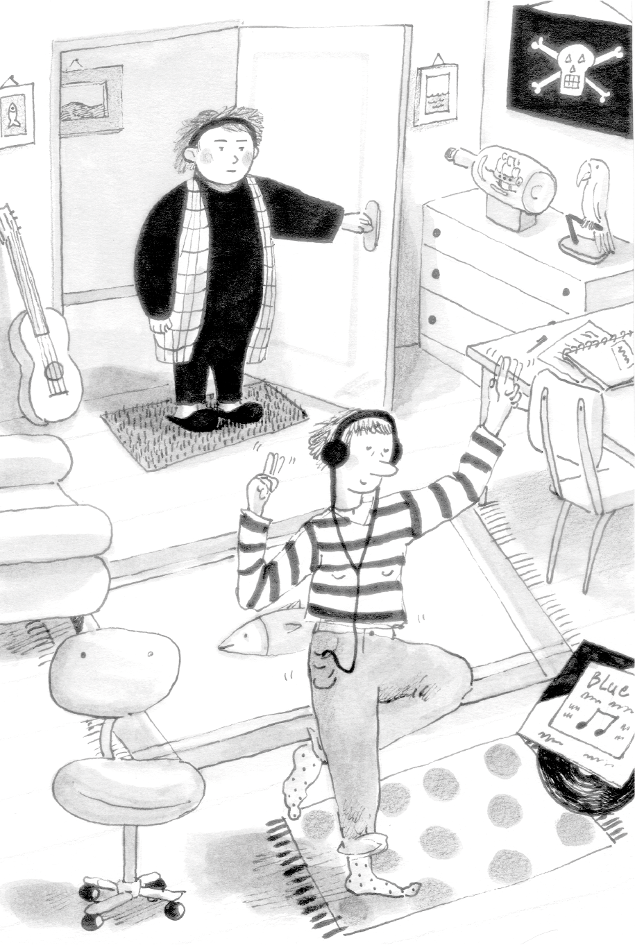 Погружённая в себя, в плотно надетых на голову наушниках, она покачивалась и подпрыгивала, как лодка посреди бушующего моря.