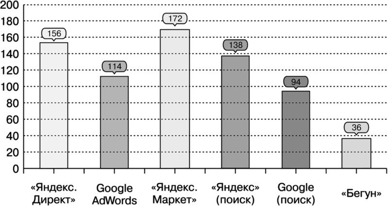 Пример 2. Компания «Системный интегратор», основной профиль работы которой – решения по автоматизации крупного и среднего бизнеса (нижняя граница стоимости – 10–15 тыс. долларов). На рис. 1.2 вы видите статистику обращений через сайт, поскольку телефон они не указывали по своим соображениям. Количество заявок приличное, притом что стоимость одного заказа уже окупает все годовые затраты на проведение SEO-мероприятий.