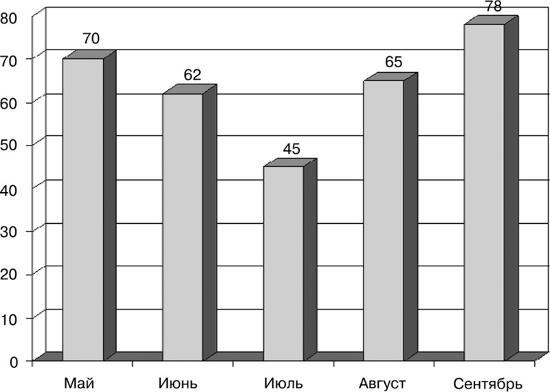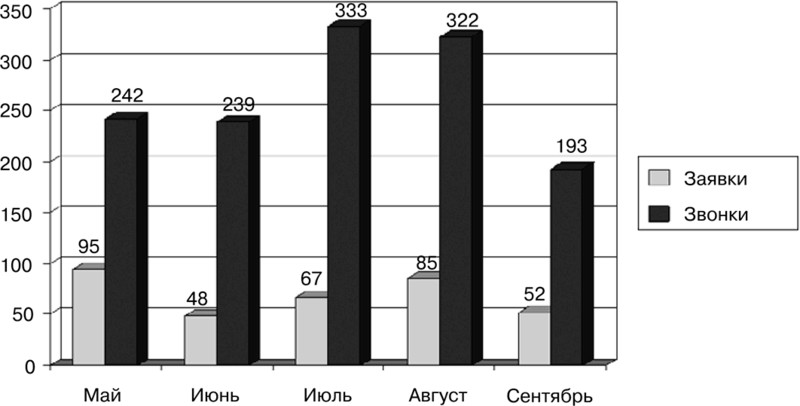 Рис. 1.1. Статистика звонков в небольшой туристической компании