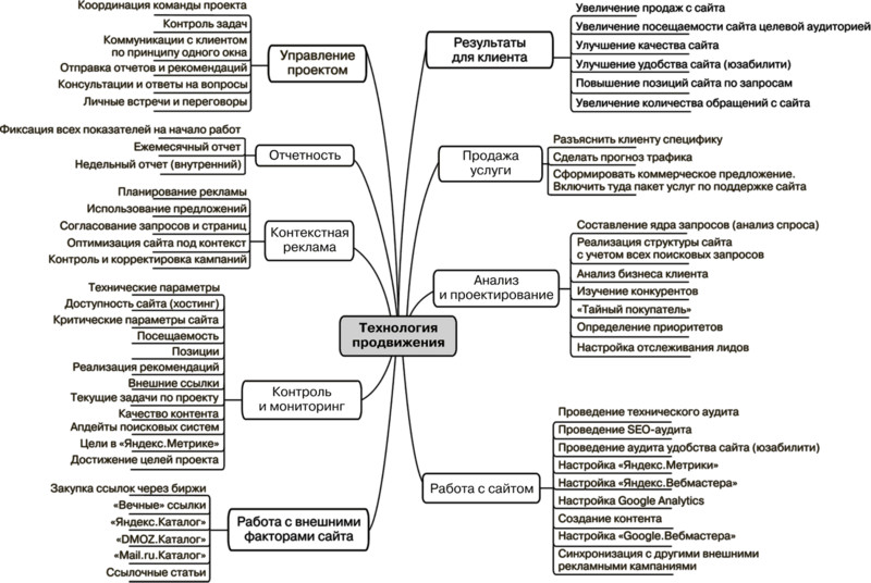 Рис. 1.8. Интеллект-карта, иллюстрирующая технологию проведения SEO