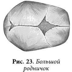 Самый крупный родничок — большой — из пяти, имеющихся у новорожденного, выглядит на макушке черепа как ямка ромбовидной формы.