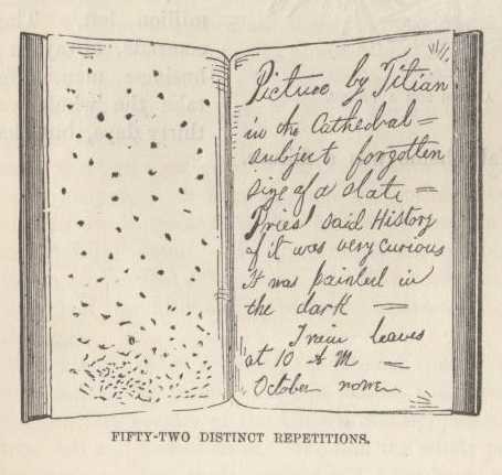 From the palace to the gloomy prison is but a step--one might almost jump across the narrow canal that intervenes. The ponderous stone Bridge of Sighs crosses it at the second story--a bridge that is a covered tunnel--you can not be seen when you walk in it. It is partitioned lengthwise, and through one compartment walked such as bore light sentences in ancient times, and through the other marched sadly the wretches whom the Three had doomed to lingering misery and utter oblivion in the dungeons, or to sudden and mysterious death. Down below the level of the water, by the light of smoking torches, we were shown the damp, thick-walled cells where many a proud patrician's life was eaten away by the long-drawn miseries of solitary imprisonment--without light, air, books; naked, unshaven, uncombed, covered with vermin; his useless tongue forgetting its office, with none to speak to; the days and nights of his life no longer marked, but merged into one eternal eventless night; far away from all cheerful sounds, buried in the silence of a tomb; forgotten by his helpless friends, and his fate a dark mystery to them forever; losing his own memory at last, and knowing no more who he was or how he came there; devouring the loaf of bread and drinking the water that were thrust into the cell by unseen hands, and troubling his worn spirit no more with hopes and fears and doubts and longings to be free; ceasing to scratch vain prayers and complainings on walls where none, not even himself, could see them, and resigning himself to hopeless apathy, driveling childishness, lunacy! Many and many a sorrowful story like this these stony walls could tell if they could but speak.