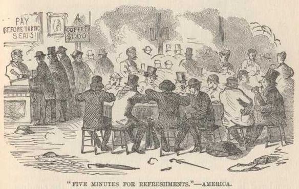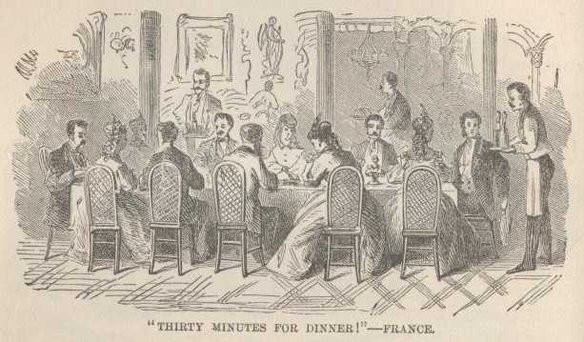 I was up early that Sabbath morning and was early to breakfast. I felt a perfectly natural desire to have a good, long, unprejudiced look at the passengers at a time when they should be free from self-consciousness—which is at breakfast, when such a moment occurs in the lives of human beings at all.