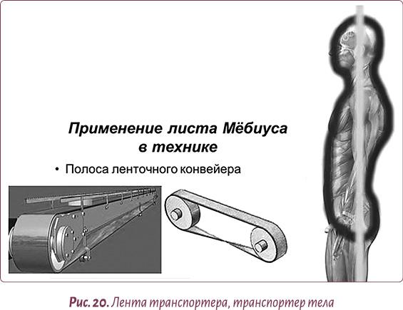 Этот «фасциальный костюмчик» в виде передней и задней поверхностей тела работает как транспортерная лента (рис. 20). В большинстве случаев он имеет тенденцию тянуться снизу вверх по нашей задней поверхности, перекидываясь на переднюю и стягивая ее вниз.