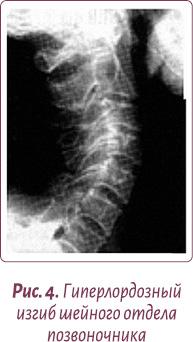 Чаще всего этот физиологический изгиб гипертрофируется, и шейные позвонки «проваливаются» вглубь шеи — формируется гиперлордоз шейного отдела позвоночника, зажимая нервные окончания и перекрывая кровоснабжение мозга (рис. 4, 5).