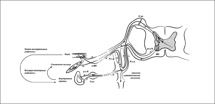 Рис. 6. Рефлекторная взаимосвязь между внутренним органом и мышцей.