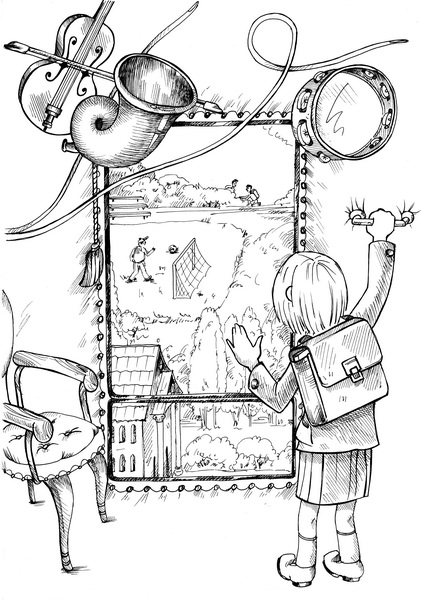 «Сплошные непонятности», — подумала девочка. Немного поколебавшись, она решила, что не стоит «искать приключений на свою голову», как говорила бабушка. «Я уже довольно большая, чтобы верить в невидимые трамваи и страны на небесах. Нужно поторопиться, а то опоздаю на математику».