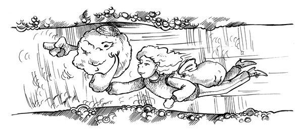 Тогда-то Маня и насмотрелась на облака: среди них были и круглые, и гладкие, и рваные. Разок самолёт даже погрузился в настоящий молочно-облачный кисель. Ей казалось, что рядом с самолётом бегут белые облачные лошадки, потом возникла драконья пасть и погналась за ними. Но на помощь лошадкам пришёл облачный принц: длинным мечом он отрубил дракону верхнюю челюсть — и тот распался на куски…