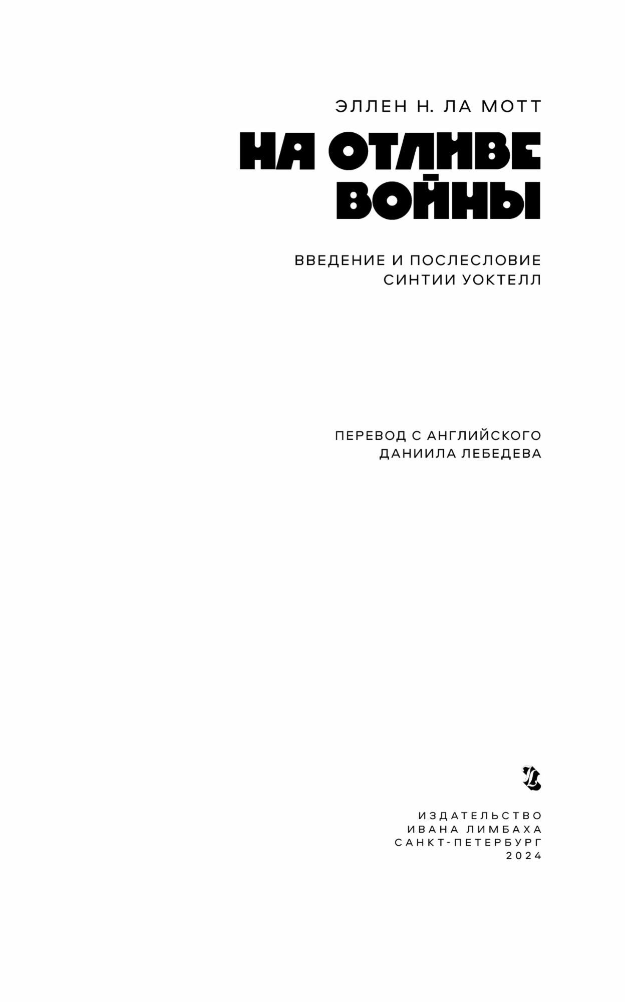 [5] Директрисой госпиталя была чикагская аристократка Мэри Борден, которая позже опубликовала свои собственные мемуары (The Forbidden Zone, London: Heinemann, 1929). Ла Мотт посвятила «На отливе войны» ей, используя ее фамилию по мужу — Мэри Борден-Тёрнер.