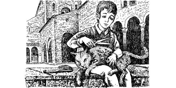 Тут Тонино рассмеялся и вытер руку о штаны. И когда он снова протянул ее Бенвенуто, тот поднялся, выгнулся, встал на все четыре лапы и, мурлыча, потянулся к ней. Тонино даже осмелился погладить Бенвенуто, который сделал несколько кругов вокруг него, выгибая спинку и мурлыча, совсем как самые маленькие и самые ласковые котята в Доме Монтана. От гордости и радости Тонино невольно расплылся в улыбке. По тому, как Бенвенуто двигал хвостом — величественными и сердитыми рывками, — было ясно, что ему не слишком-то нравится, когда его гладят. Но он терпел, и это тем более было честью.