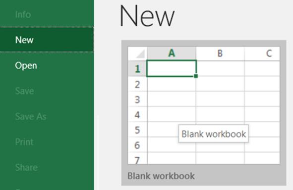 File — New — Blank Workbook