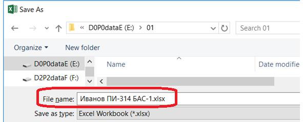 Надеюсь, читателям уже приходилось сохранять файлы. Здесь всё просто и знакомо — кроме одной незначительнй детали. Нам нужно не просто дать КАКОЕ-НИБУДЬ название или не глядя согласиться с безликим Book1.xlsx или Книга1.xlsx. Нужно выбрать КОРОТКОЕ ИНФОРМАТИВНОЕ название.
