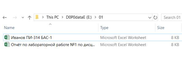 Проверим, как отображается имя файла в Проводнике, он же File Explorer.