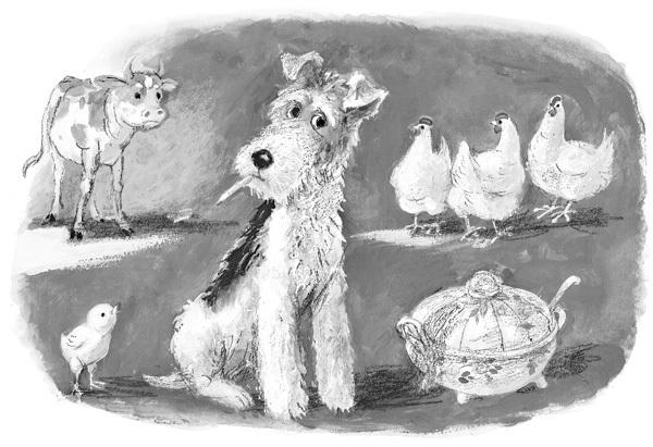 Разве я пристаю, разве я прошу ещё, как Зина и другие дети? Разве я ем сладкое: клейстер, который называется киселём, или жидкую гадость из чернослива и изюма, или холодный ужас, который они называют мороженым? Я деликатнее всех собак, потому что я породистый фокс. Погрызу косточку, съем, осторожно взяв из рук Зины, бисквит, и всё.